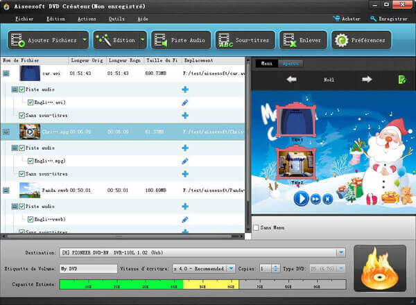 Comparé avec d'autres logiciels de gravure de DVD, Aiseesoft DVD Créateur peut convertir et graver toute la vidéo sur un disque DVD directement. Il est plus puissant qu'un DVD burner. De plus, vous pouvez également transformer la vidéo en un dossier DVD ou un fichier ISO pour une gravure ultérieure.