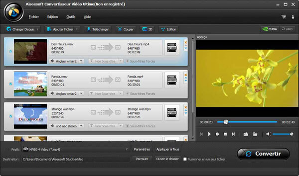 Ce Convertisseur Vidéo Ultimate est un convertisseur vidéo. Il vous permet d'éditer la vidéo pratiquement. Il est également capable de convertir tous les fichiers vidéo en un autre format vidéo 2D/3D comme vous voulez. La conversion 4K sont pris en charge.